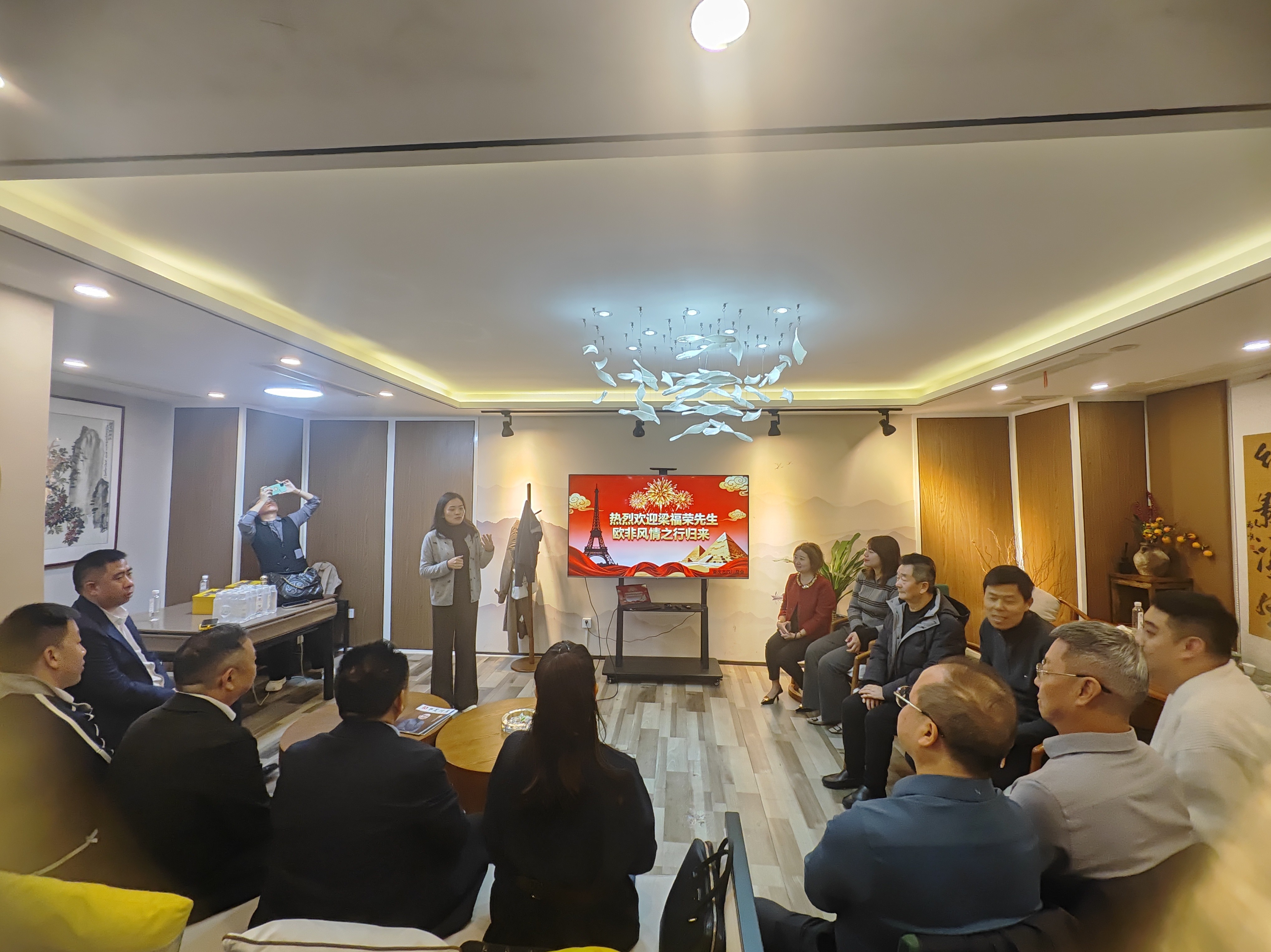 活动现场氛围热烈融洽,与会会长们首先向监事会主席梁福荣的顺利回归表示祝贺。梁福荣主席分享了此次欧非之行的所见所闻、所思所感,从异域风土人情到商业发展机遇,生动的讲述为在场嘉宾带来了全新的视野与启发。